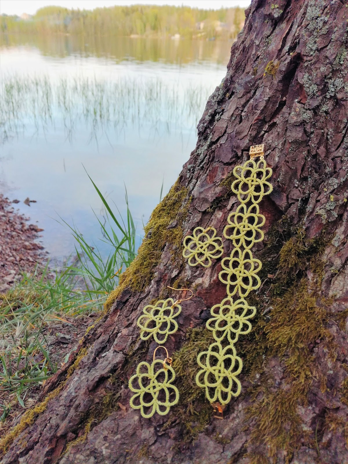 Kukan muodostamiseen käytin Lizbeth 20 moniväristä keltaista, josta sain kukkaan myös vähän lisää tummemman keltaista sävyä. Lehdessä käytin sydänlankana Lizbeth 20 – lankaa saadakseni solmut vähän ohuemmiksi.